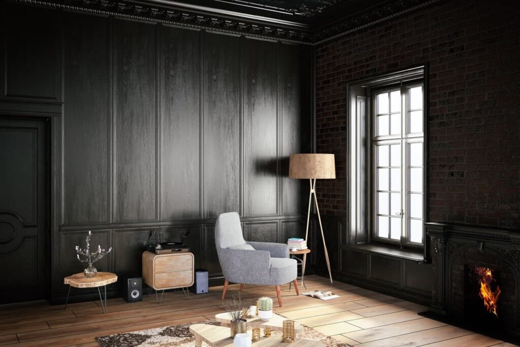 Jeśli natomiast chcemy optycznie pomniejszyć pomieszczenie, warto pomalować ściany na ciemne, intensywne kolory, takie jak czerń, granat, ciemny brąz lub ciemny bordowy. Te kolory dodają masywności i sprawiają, że pomieszczenie wydaje się mniejsze.
